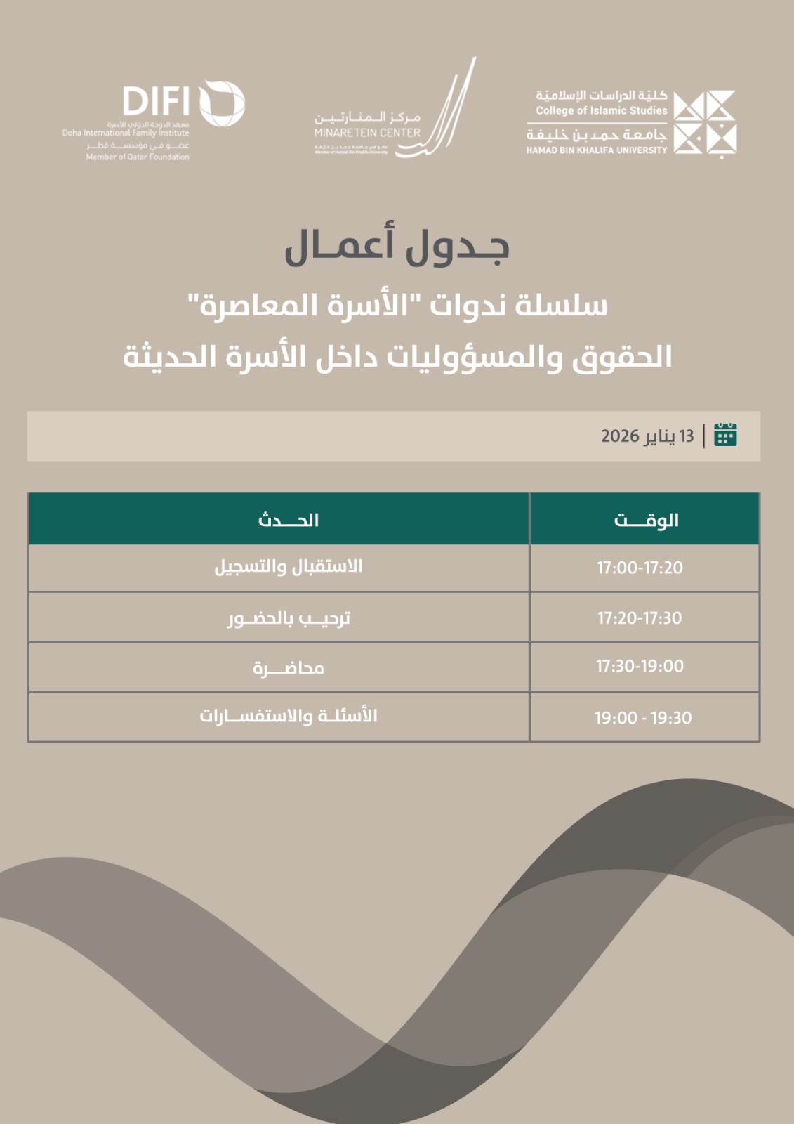 تسلّط هذه الندوة الضوء على التحديات المعاصرة التي تواجه الأسر نتيجة عدم التوازن بين الحقوق والواجبات، وتأثير ذلك على الاستقرار الأسري والصحة النفسية والاجتماعية لأفراد الأسرة.. وتتناول الندوة هذه الإشكالية من منظور متكامل يجمع بين الإرشاد الأسري، والقانون العائلي، وبرامج الدعم والتوعية المجتمعية، مع تقديم رؤى عملية وحلول قابلة للتطبيق لتعزيز التوازن الأسري وبناء أسرة مستقرة تشكّل أساسًا لمجتمع متماسك ومزدهر.