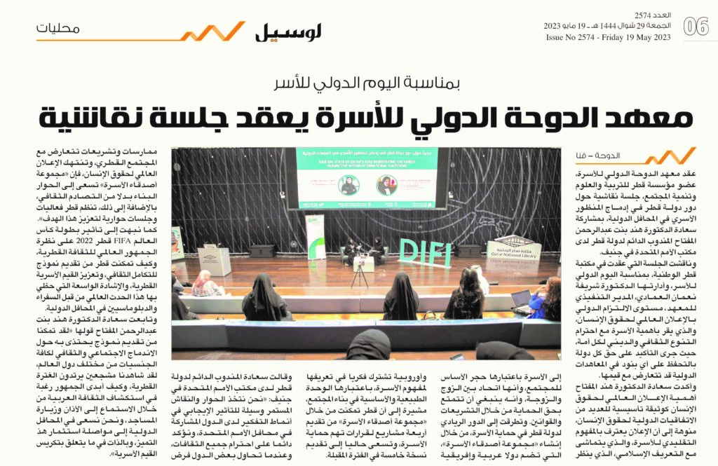 معهد الدوحة الدولي للأسرة يعقد جلسة نقاشية حول دور قطر في إدماج المنظور الأسري في المحافل الدولية