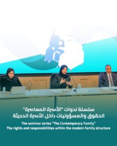 This seminar highlights the contemporary challenges facing families due to the imbalance between rights and responsibilities and its impact on family stability and the psychological and social well-being of family members. It adopts a comprehensive approach that integrates family counseling, family law, and community support and awareness programs, offering practical insights and applicable solutions to promote balance within the family and contribute to building a stable family as the foundation of a cohesive and thriving society.