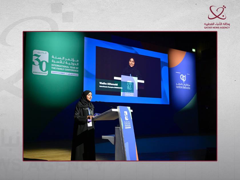 QatarDebate Center, a member of Qatar Foundation for Education, Science and Community Development (QF), organized Tuesday the Youth Summit on 30th Anniversary of The International Year of the Family Conference in collaboration with the Doha International Family Institute as part of the events accompanying the 30th Anniversary of the International Year of the Family on Family and Contemporary Megatrends.