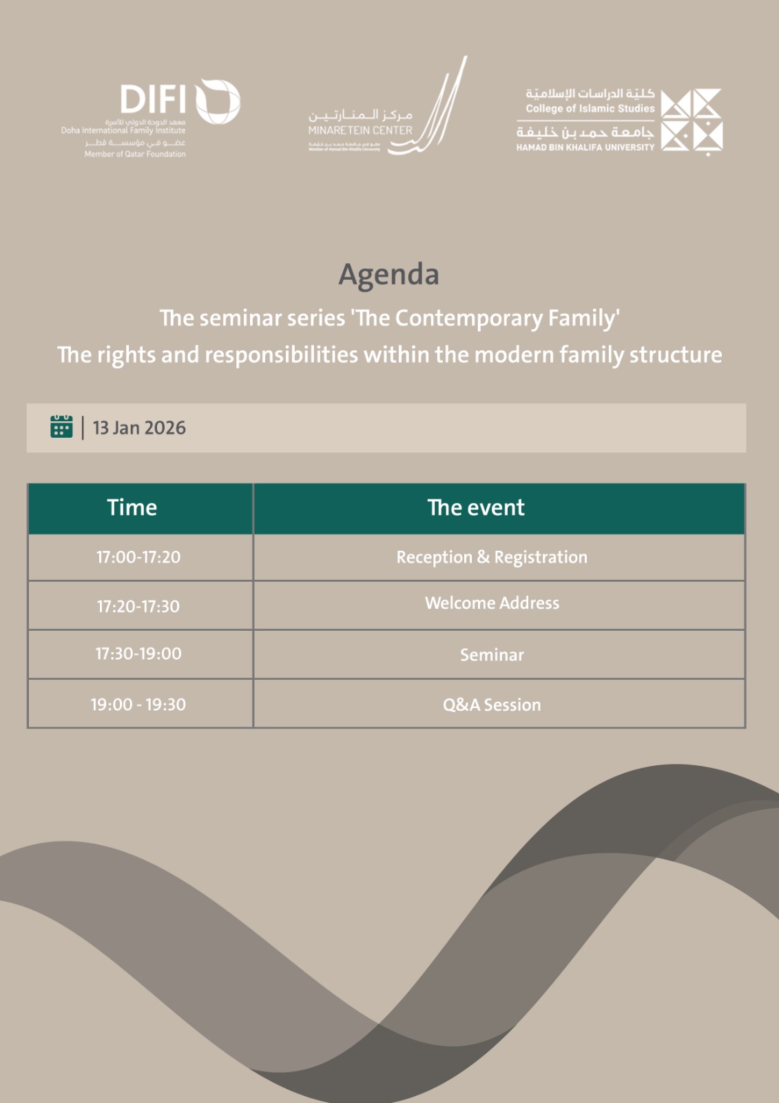 This seminar highlights the contemporary challenges facing families due to the imbalance between rights and responsibilities and its impact on family stability and the psychological and social well-being of family members. It adopts a comprehensive approach that integrates family counseling, family law, and community support and awareness programs, offering practical insights and applicable solutions to promote balance within the family and contribute to building a stable family as the foundation of a cohesive and thriving society.