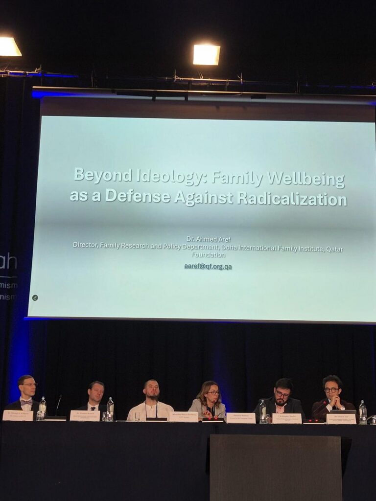 Dr. Ahmed Aref participated in the Hedayah International Research Conference in Brussels, presenting insights on family wellbeing as a protective factor against radicalization during an interactive EU-partnered panel