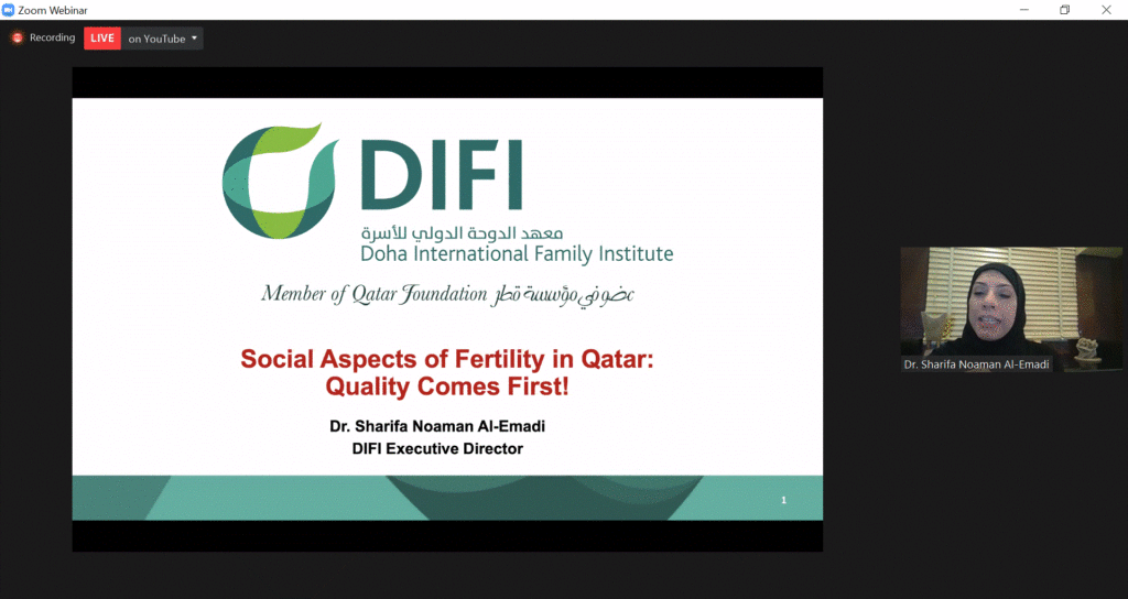 Under the priority theme of ‘population and sustainable development, in particular sustained and inclusive economic growth’, the Doha International Family Institute (DIFI), a member of Qatar Foundation, organized a virtual side event on 26 April 2022 during the United Nations 55th Session of the Commission on Population and Development, titled “Quality over Quantity – How Parental Decisions are Impacting Fertility” in partnership with the Permanent Mission of the State of Qatar and the United Nations Population Fund – Regional Office of Arab States (UNFPA).